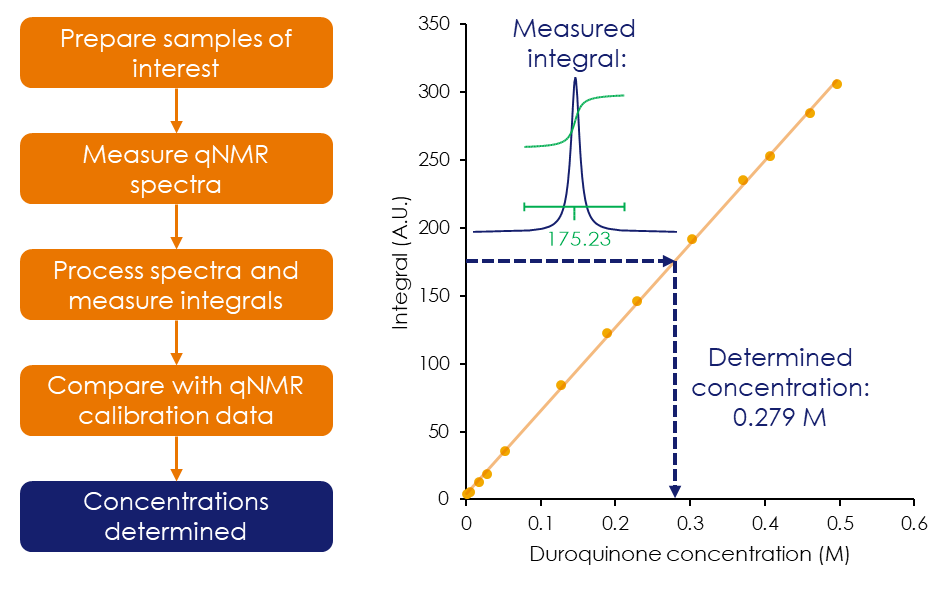 図 2:卓上型 qNMR を用いた外部標準法によるデュロキノンの濃度測定