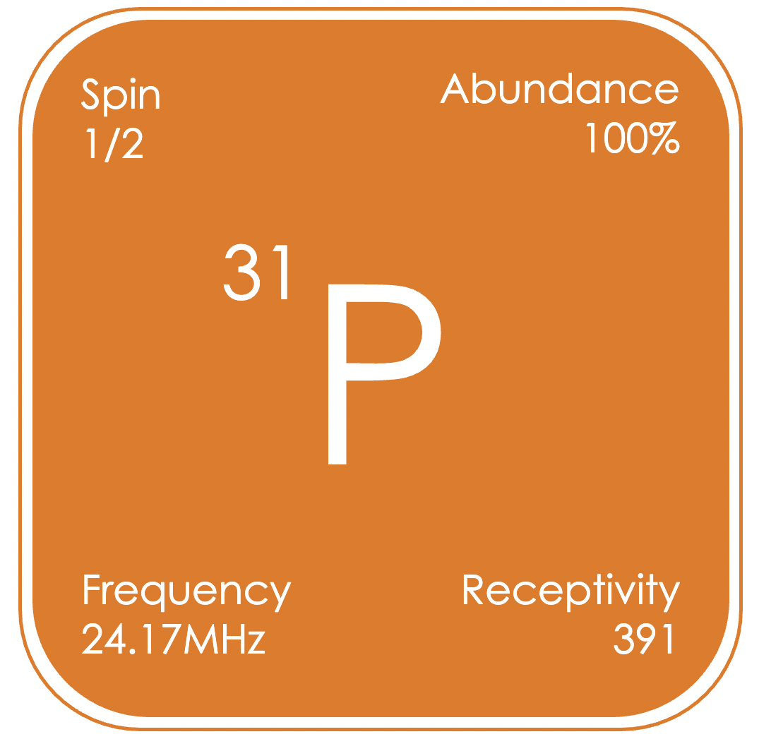 ³¹P NMR分光法は、リンを含む配位子を用いることが多い錯体化学や触媒反応によく用いられます。また、リン酸塩 (PO₄³-) は多くの生化学的経路で重要な役割を果たしており、リンを含む化合物は医薬品や栄養補助食品に含まれていることから、NMRによる研究に適しています。さらに、リチウムイオン電池によく用いられているヘキサフルオロリン酸アニオンなど、リンを含むアニオンも数多く存在します。³¹Pスペクトルはプロトン(¹H)をデカップリングしたものが一般的であり、δP -180〜+250 ppm(基準:D₂O中のH₃PO₄)の広い範囲に通常シャープな信号が観測されます。