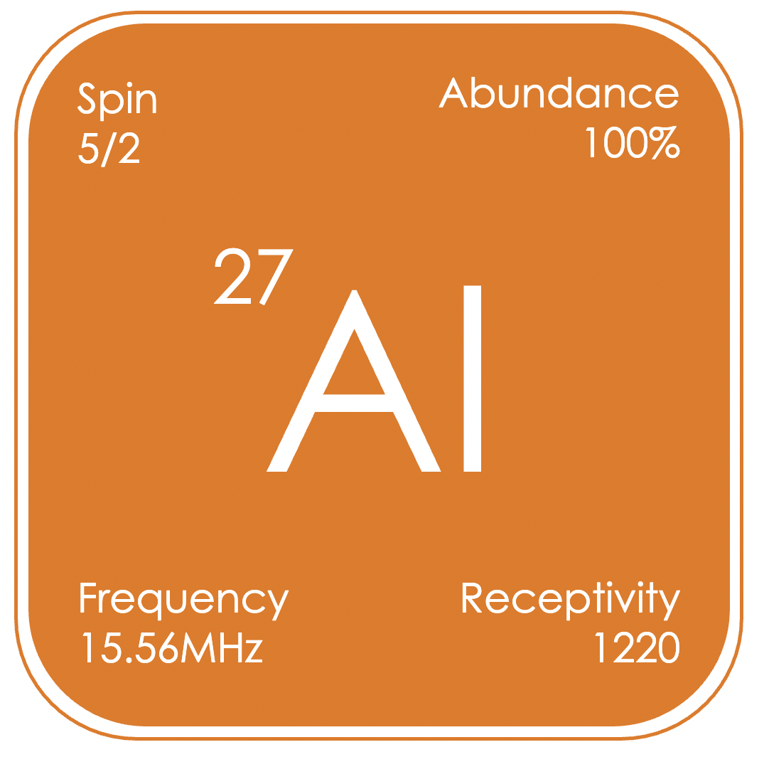 ²⁷Alは、相対感度の高い核であり、通常、δAl -200〜+200 ppm(基準:D₂O中のAl(NO₃)₃)の範囲にブロードな信号が観測されます。アルミニウムを含む化合物は、医薬品やファインケミカルの合成の中間体としてよく用いられています。また、アルミニウムはエネルギー貯蔵にも利用されており、アルミニウムイオン電池は、地殻中にアルミニウムが豊富なことや、理論上、エネルギー密度が高いことにより、リチウムイオン電池の代替となる可能性があります。