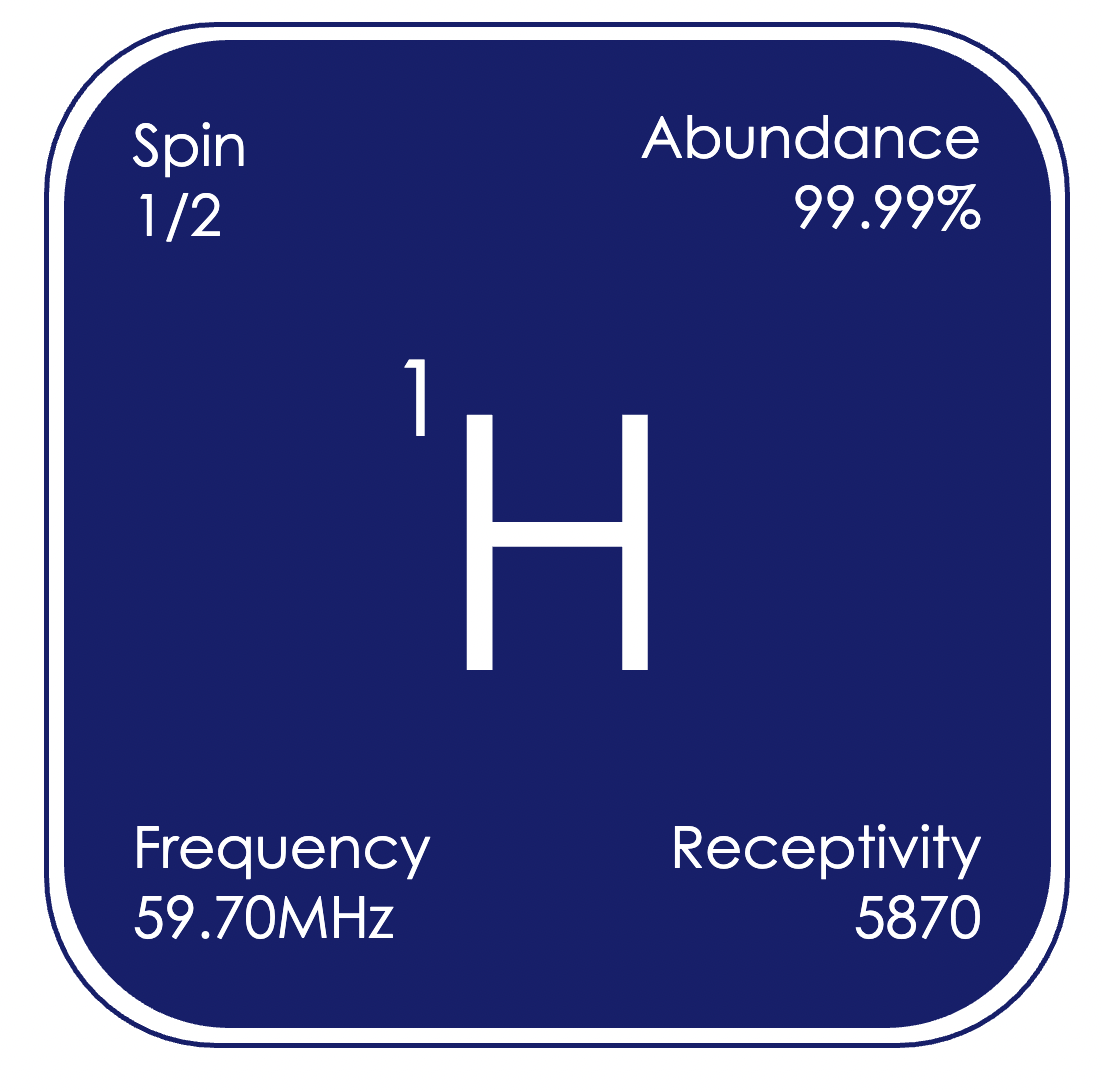¹H(プロトン)はNMR分光法で使用される典型的な原子核であり、最も感度が高く、多くの化合物に存在します。単純な反磁性有機化合物や有機金属化合物の信号は、δH −5~+15 ppm(基準:CDCl₃ 中の (CH₃)₄Si)の範囲に観測され、化学的環境と化学シフトとの相関は十分に確立されています。