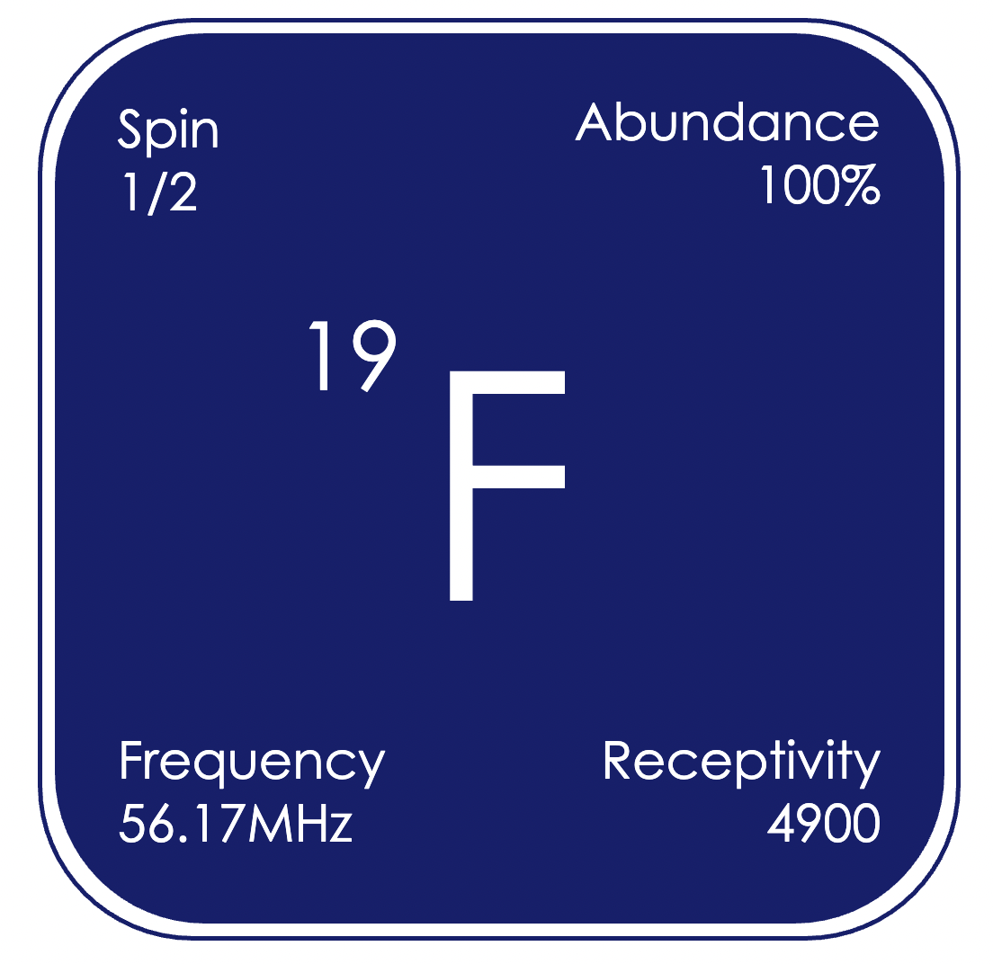2番目に高い相対感度をもつ原子核として、¹⁹FはNMR分光法でよく研究されており、δF +100~-250 ppm(基準:CCl₃F)と、¹Hに比べてかなり広い範囲に観測されます。¹⁹Fは¹Hと同様にスピン量子数が1/2の核であり、フッ素(¹⁹F)-フッ素(¹⁹F)、フッ素(¹⁹F)-プロトン(¹H)のカップリングがよく観測されます。フッ素化合物は、医薬品、バルク化学品、およびバッテリーといった電気化学デバイスなど、非常に幅広い用途で使用されています。