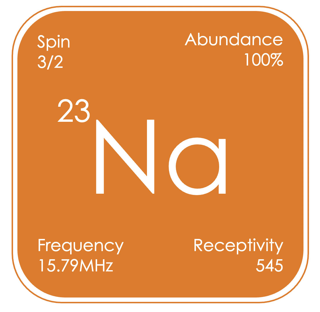 ナトリウムは地殻中で6番目に多い元素であり、生体内に広く存在しています。また、ナトリウムを含む化合物は、有機金属化学において重要な試薬でもあります。さらに、ナトリウムは食品、飲料、医薬品、石油添加物、ポリマーなど、非常に幅広い物質の構成要素となっています。²³Naは四極子核であり、線幅は分子の対称性や大きさに強く依存します。²³Naの信号は、δNa +10〜-60 ppmの範囲に観測されます(基準:D₂O中のNaCl)。